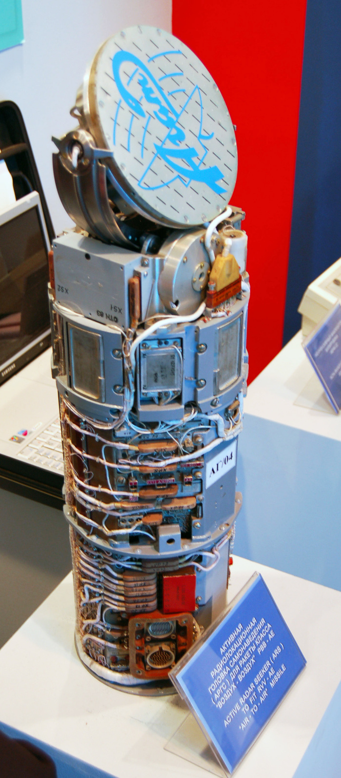 據(jù)俄羅斯媒體稱,上世紀(jì)80年代研制而成的R-77中程主動雷達(dá)制導(dǎo)導(dǎo)彈能夠?qū)崿F(xiàn)發(fā)射后不管,最初同樣由烏克蘭“阿爾焦姆”公司生產(chǎn),但在蘇聯(lián)解體后停產(chǎn)。90年代中期俄羅斯“信號旗”設(shè)計局自行組織批量生產(chǎn)出口型R-77導(dǎo)彈,代號RVV-AE,使用改進(jìn)型自導(dǎo)彈頭。隨后RVV-AE導(dǎo)彈成為所有蘇-27和米格-29系列新型和改型戰(zhàn)機(jī)不可分割的一部分,成為戰(zhàn)術(shù)導(dǎo)彈武器集團(tuán)的出口拳頭產(chǎn)品,創(chuàng)造了豐厚的外匯收入,其中僅向中國就供應(yīng)了大約1500枚,向印度供應(yīng)了至少800枚,現(xiàn)在還在繼續(xù)供應(yīng)。另外還在向其他一些國家出口。(圖為R-77的導(dǎo)引頭,它也是PL-12的技術(shù)來源之一)