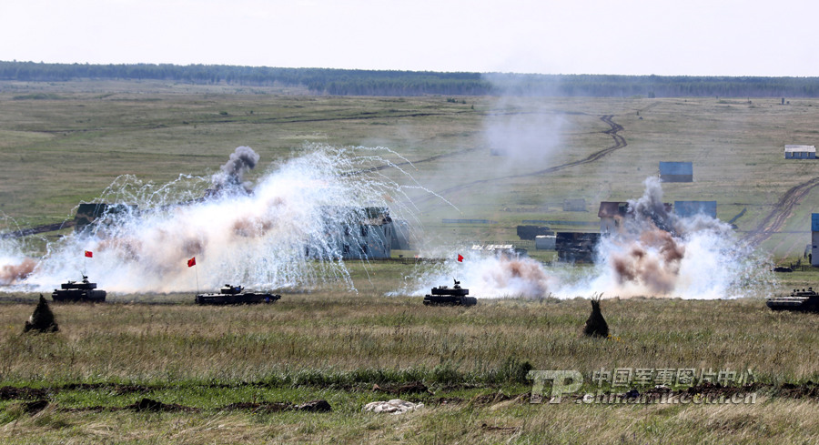 我坦克戰(zhàn)車對(duì)恐怖武裝力量實(shí)施火力打擊。李祥輝攝