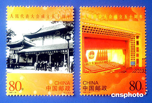 中新社北京九月十三日電中華人民共和國(guó)第一屆全國(guó)人民代表大會(huì)第一次會(huì)議于一九五四年九月十五日在北京召開(kāi)。為紀(jì)念人民代表大會(huì)成立五十周年,中國(guó)國(guó)家郵政局定于二00四年九月十五日發(fā)行《人民代表大會(huì)成立五十周年》紀(jì)念郵票。