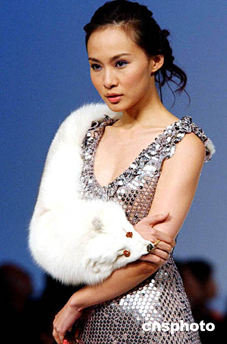 1月20日,在香港會(huì)展中心舉行的香港時(shí)裝節(jié)上演“國際時(shí)裝設(shè)計(jì)師表演”專場,名模楊崢演繹香港設(shè)計(jì)師Michael Chan作品。作者:洪少葵