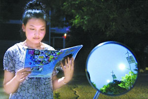 7月25日晚,一名居民在呼和浩特市學(xué)府花園社區(qū)的“風(fēng)光互補(bǔ)”路燈下閱讀。7月24日,呼和浩特市學(xué)府花園社區(qū)投資13萬元,在廣場安裝了4套“風(fēng)光互補(bǔ)”路燈,利用風(fēng)能和太陽能為小區(qū)照明,此舉每年可節(jié)約用電14000多度。新華社發(fā)