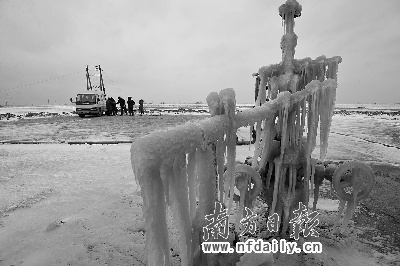 這已經(jīng)是冰封渤海后的第二個(gè)星期,勝利油田所在的東營(yíng)市彌漫著從海邊吹來(lái)的冰凍氣息,被冰凍上的已有6個(gè)平臺(tái),它們都因此停止了作業(yè)。