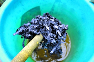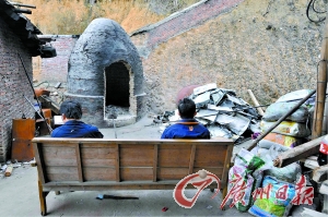 在靠山腳下的一排爐子前面,一個年輕小伙正在焚燒用黑塑料袋裝著的東西?吹接浾呱锨埃晃徊儆谢浳骺谝、年齡在40歲上下的老板模樣的人湊上前來!澳氵@是煉金嗎?”“不是煉金,搞點電鍍廠的廢水!庇浾呖吹接幸粋盛有金黃色液體的玻璃器皿放在一個鐵盆上。在雨棚一側,還堆有幾十個藍、黑色的塑料桶,桶口均用塑料袋堵住后,再用蓋子蓋上的。