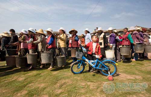 和法邑村的740口人一樣幸運(yùn)的是,云南省多個(gè)地方的村民都喝上了新井里的水。截止3月24號(hào)中午12點(diǎn),云南省一共布井702口,開(kāi)工鉆井148口,出水井56眼,初步測(cè)算總出水量4000立方/日。十多萬(wàn)人的飲水困難得以解決。云南省國(guó)土資源廳副廳長(zhǎng)李連舉介紹,目前,云南省國(guó)土資源廳正按原定計(jì)劃陸續(xù)開(kāi)展三批探采井工程。