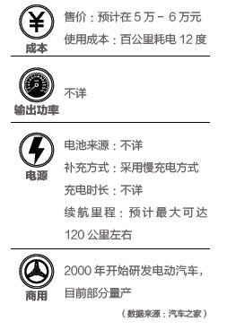 4月初,奇瑞汽車在其總部安徽蕪湖舉行了QQ3純電動汽車用戶交車儀式。奇瑞汽車總經(jīng)理助理金弋波告訴《中國經(jīng)濟 周刊》:“QQ3純電動轎車采用純電驅(qū)動,百公里耗電僅12度左右。目前該車已經(jīng)順利通過國家安全碰撞測試,并已上榜工信部《節(jié)能與新能源汽車示范推廣工程推薦車型目錄》!