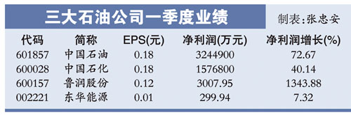 中信證券石化行業(yè)首席分析師殷孝東說(shuō),一季度中石油業(yè)績(jī)?cè)鲩L(zhǎng)主要受益于國(guó)際油價(jià)的上漲;而中石化則更依賴(lài)于化工和銷(xiāo)售板塊業(yè)績(jī)的上升。