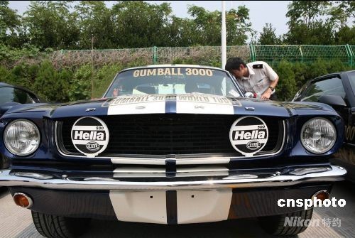 圖為福特野馬(Ford Mstang)跑車正在接受海關關員認真的檢查。