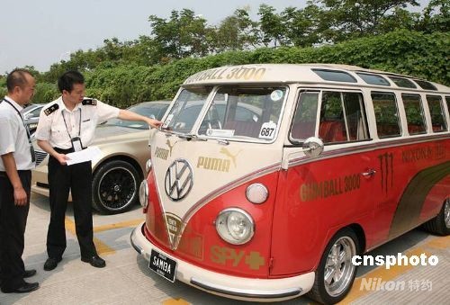 8月13日,22輛古董名車從杭州蕭山空港入境,快速通過杭州海關為其專門開啟的通關“綠色窗口”,正式開啟了百輛名車“為奧運喝彩”的中國境內自駕助威之旅。中新社發(fā) 柴燕菲 攝