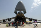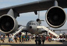 當地時間5月4日,位于美國南加州河濱縣的一個美國空軍預備基地舉行規(guī)模盛大的航空展和飛行表演。C-17A全球霸王運輸機、C-5銀河運輸機等空中巨無霸和F-22猛禽戰(zhàn)機等美軍先進軍用飛機亮相展覽,F-22戰(zhàn)機飛行表演、美國空軍“雷鳥”飛行隊的特技表演等令近十萬民眾大飽眼福。