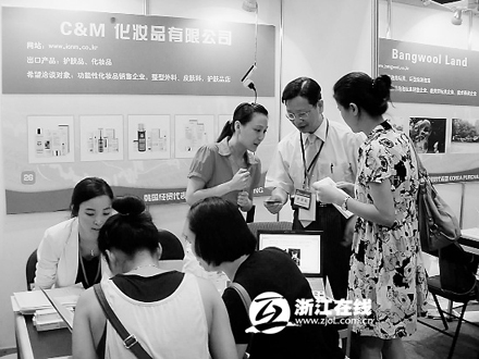 在現(xiàn)場,記者了解到,韓國的化妝品企業(yè)是最受歡迎的。一位美容行業(yè)的林小姐告訴記者,她是專程到現(xiàn)場看韓國化妝品的,尋找有合作意向的韓國企業(yè)。這次展會上有好些韓國化妝品企業(yè),她找了兩家適合她的顧客群的化妝品公司,談了初步意向,打算再抽時間細談,或許地點會是在韓國。