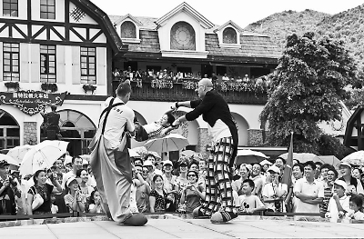 記者采訪途中遇見一位來自韓國的游客,他說,他這回到香港購物,卻還是抽出時(shí)間來華僑城看看《東方霓裳》。他早就聽說,這臺(tái)演出是中國唯一連續(xù)上演數(shù)千場的大型民族服飾舞蹈詩。這個(gè)節(jié)目,按照中國地域分為“北國風(fēng),南疆花,西域雪,東海月”四部分,120名演員用350套民族服飾來演繹地域風(fēng)情,游客常常用“炫目”來評(píng)價(jià)它,并為其中深厚的中華文化內(nèi)涵而傾倒。錦繡中華副總經(jīng)理王楠燕向記者介紹,多年以來,深圳入境游客,多是沖著華僑城主題公園的大型表演而來,說明這些表演已在海外市場享有較好的口碑。