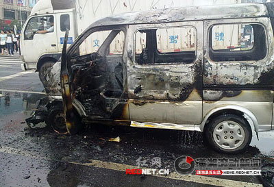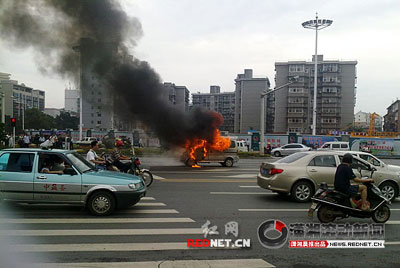 目擊者介紹,小車(chē)起明火后,頓時(shí)濃煙彌漫,一度影響交通。交警立即在現(xiàn)場(chǎng)指揮疏導(dǎo),等待消防前來(lái)滅火。10分鐘后,火被熄滅,但是貨車(chē)也燒得“不成模樣”。