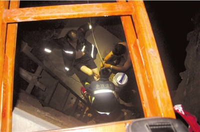 香山消防中隊消防員到場后,在塌陷坑上方搭建安全支架。幾名消防員下到坑底,為楊先生系好安全繩索,其中一人還脫下衣服為赤膊的楊先生披上,隨后順利將其拉到地面。已等在一旁的120急救人員迅速將楊先生送往醫(yī)院。