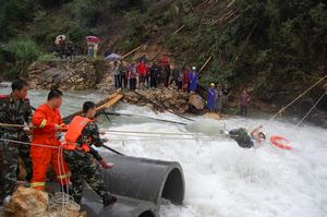 中新網(wǎng)麗水7月9日電(記者 江耘 實習生 陳佳 通訊員 李正坤)今天中午12時許,浙江省麗水市龍泉錦溪鎮(zhèn)肖莊村三名村民在路過一座臨時搭建的簡易木橋時,木橋被突如其來的洪水沖翻,三人隨即被大水沖走,一人幸免,兩人死亡。