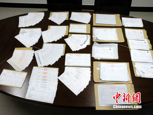 中新網(wǎng)杭州7月9日電(記者 趙曄嬌 實習(xí)生 吳顯 通訊員 趙錚 張成)今天,杭州市公安局濱江分局發(fā)布消息稱,通過一張“代開發(fā)票”的名片提供的線索,浙江省杭州市公安局濱江分局日前成功破獲了一起涉案金額巨大的非法出售發(fā)票案。主犯韓某等4名犯罪嫌疑人被刑事拘留,現(xiàn)場收繳14種發(fā)票共計3萬2千余份,繳獲各類私刻公章115枚及大量打印機(jī)、電腦等制作假發(fā)票工具。