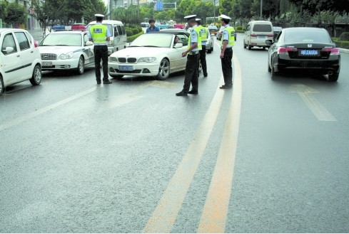 昨日上午9時(shí)許,綿陽(yáng)交警直屬三大隊(duì)民警范強(qiáng)正在治平路附近執(zhí)勤,而從芙蓉漢城到東津路都在進(jìn)行交通管制,所有車輛按照規(guī)定正在等待放行。突然,一輛車牌號(hào)為川BAG789的白色寶馬跑車駛進(jìn)了交通管制區(qū),并一路飛奔。范強(qiáng)見狀,立即打手勢(shì)示意司機(jī)停車檢查。見此情形,司機(jī)不但沒有停車,反而加速向芙蓉橋駛?cè)ァ?/p>