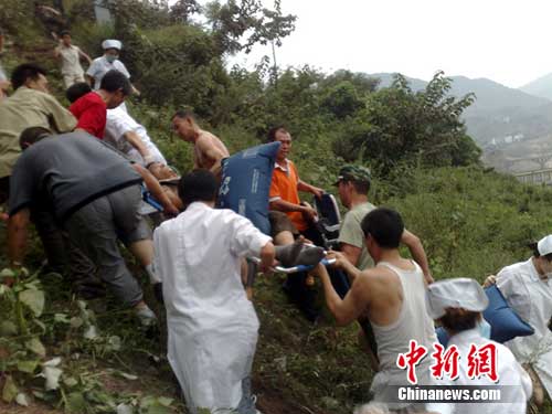 由于出事地點地形十分險要,公路離崖底大約有30米的垂直距離,根本無路可下,情況十分危急,當?shù)卮迕竦膮f(xié)助下找來鋤頭、鐵鍬迅速打開了一條臨時“生命通道”,趕到現(xiàn)場救援的消防官兵帶上破拆工具鉆進車內(nèi)搜救幸存者,傷者被找到并用腰帶將傷者固定在擔架上,在當?shù)卮迕窈偷膮f(xié)助下,用接力的方式抬著擔架,將傷者抬上路面,并立即送往縣內(nèi)各大醫(yī)院進行急救。趕到現(xiàn)場的醫(yī)務人員判斷,車內(nèi)有一些已無生命跡象。