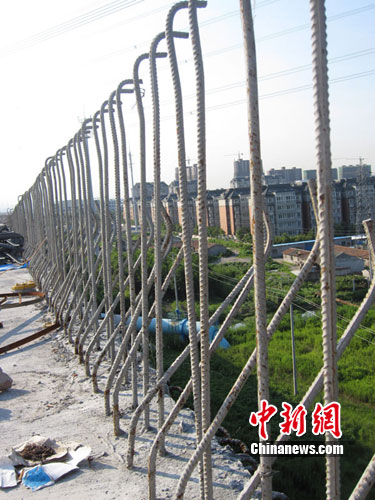 在對部分護(hù)欄外露的鋼筋經(jīng)過卷尺測量,并將Φ16鋼筋與Φ18鋼筋進(jìn)行肉眼比較觀察后,發(fā)現(xiàn)確實(shí)有部分外露鋼筋存在用Φ16鋼筋代替Φ18鋼筋的現(xiàn)象。記者目測,長度約有100-200米。而工程方一位相關(guān)負(fù)責(zé)人認(rèn)為沒有那么多,就3個孔,每孔30多米,90米左右。