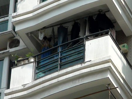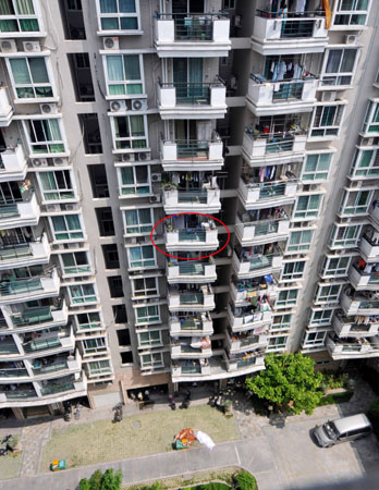 住在小區(qū)2號(hào)樓的老王目擊了整個(gè)過(guò)程!八(dāng)時(shí)半蹲著,雙手緊抓著陽(yáng)臺(tái)護(hù)欄,雙腳踩在陽(yáng)臺(tái)外側(cè)的邊沿上。”老王一邊模仿男子當(dāng)時(shí)的姿勢(shì),一邊說(shuō),“他嘴里一直在喊救命,小區(qū)門(mén)口的保安聽(tīng)到后趕緊往那邊跑,我也趕過(guò)去想幫助救人。保安剛到樓下,那小伙子的左腳突然滑下來(lái),他往上蹬了幾下,沒(méi)蹬上去,右腳也跟著滑了下來(lái),僅靠雙手抓住護(hù)欄。沒(méi)幾秒鐘,人就摔了下來(lái)!