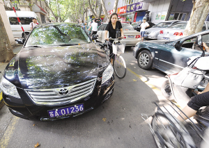 玉泉路很窄,僅有兩股車(chē)道,出入的車(chē)輛又多,這下緊隨其后的車(chē)輛出入不得。后面一位男司機(jī)高喊:“我也要上班呀!車(chē)動(dòng)一下。”但是對(duì)方頭也沒(méi)有回就鉆入大樓。黑色轎車(chē)死死地?cái)[在路中央。加上另一股車(chē)道上的汽車(chē)也多,在蘇A01236的省級(jí)機(jī)關(guān)汽車(chē)屁股后的汽車(chē)司機(jī)們,一個(gè)個(gè)從車(chē)窗內(nèi)伸出脖子,等呀等呀,但那位瀟灑的駕車(chē)人就是不出來(lái),大家紛紛按響喇叭抗議。
