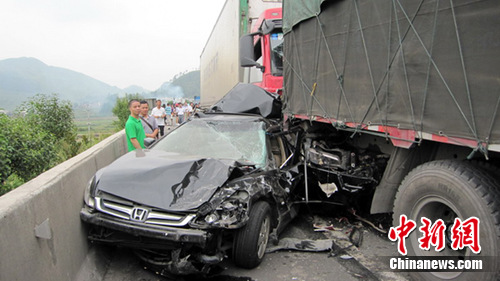 那輛被肇事大車推行了30多米的廣本車司機(jī),更是驚魂未定,指著被撞成一堆廢鐵的愛(ài)車說(shuō),我與妻子兩人在車上,突然被后面的大車碰撞,被向前推了幾十米后再次擠碰到前面的大貨才停下,車身部分被擠壓成鐵餅,我們?cè)趭A縫中自己爬了出來(lái),幸好只是妻子受了一點(diǎn)刮傷。