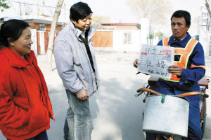 “環(huán)衛(wèi)工人征婚,電話28128919”。昨天上午10時(shí)許,在本市河西區(qū)珠江道,一名男性環(huán)衛(wèi)工公開(kāi)征婚的招牌,吸引了路人的目光。“起初我也抹不開(kāi)面兒,隊(duì)長(zhǎng)告訴我說(shuō),大學(xué)教授還公開(kāi)征婚呢,沒(méi)什么不好意思的。”當(dāng)事人老崔紅著臉解釋說(shuō)。