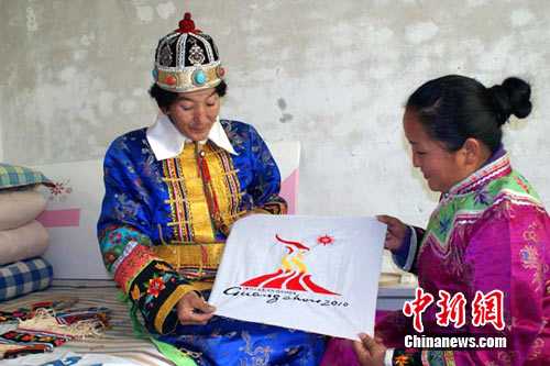 中新網(wǎng)烏魯木齊11月11日電(孟根 李三山 王洪濤)廣州亞運會開幕在即,距離遙遠的新疆人也在期盼這繼北京奧運、上海世博之后中國再次舉辦的宏大盛事。記者11日從新疆博湖縣獲悉,該縣蒙古族刺繡女藝人為表達自己期盼的心情,運用蒙古族傳統(tǒng)刺繡技藝秀出一副“五羊圣火”,期待亞運來臨。