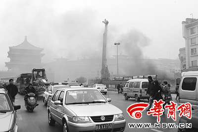出事地點(diǎn)位于地鐵二號(hào)線鐘樓站右線隧道北端。上午10時(shí)20分許,記者趕到現(xiàn)場(chǎng),看到坑道內(nèi)不斷向外冒黑煙,且越來越濃,濃煙順著隧道從20米外的另一出口排出,很快,鐘樓便籠罩在濃煙中,行人紛紛掩鼻而過。數(shù)名身著防護(hù)服背著壓縮空氣的消防戰(zhàn)士正在坑道作業(yè),一名消防戰(zhàn)士說,因?yàn)橹鹛幱姓系K物且濃煙影響視線,所以只能在外圍滅火。11時(shí)許,煙霧明顯減少。