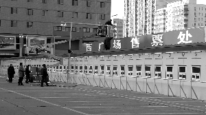 經過5天房屋搭建和設備調試,昨日,北京西站北廣場西側,由社會停車場改造的臨時售票處啟用。