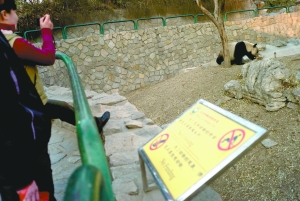 動(dòng)物園工作人員表示,鑒于動(dòng)物園曾發(fā)生過(guò)游客跳入大熊貓運(yùn)動(dòng)場(chǎng)被咬事件,園方已安排動(dòng)物展示時(shí)專(zhuān)人看護(hù),并在多處多角度設(shè)置了警示牌、提示牌。