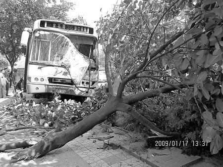 一位目擊者告訴記者,車(chē)禍發(fā)生后,36路車(chē)是與同方向開(kāi)行的66路車(chē)發(fā)生追尾撞的,66路車(chē)“傷情”較輕,已經(jīng)被交通拯救車(chē)拖走。而36路連續(xù)發(fā)生碰撞后,被卡在裸露在人行道上的樹(shù)根上,再加上該肇事車(chē)駕駛室嚴(yán)重?fù)p壞,善后處理工作難度較大,需要時(shí)間吊轉(zhuǎn)。