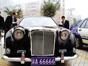 昨日,記者在論壇上看到,天涯網(wǎng)友“還說啥”貼出了兩張同樣懸掛著“渝A66666”藍(lán)底色車牌的豪華車,其中一輛為一臺限量版的日本光岡老爺車,據(jù)估計價格約為一千萬元人民幣。網(wǎng)友還指出,老爺車好像是重慶一開發(fā)商的。