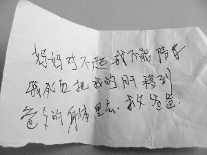 “媽媽對不起,我不能陪你,我死后把我的肝移到爸爸的身體里去,救爸爸!边@是13歲初一女生琳琳(化名)在吞下200片安眠藥之前,留給母親的遺書。