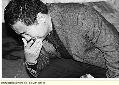 昨日下午5時30分,記者在榆林市公安局交警二大隊留置室見到了薛斐耀,見到記者,他雙手抱頭默默流下眼淚。