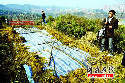 望城某鎮(zhèn)(出于保密需要,此處隱去鎮(zhèn)名)文化專員向記者介紹了該鎮(zhèn)墓葬被盜的情況。2009年1月20日左右,鎮(zhèn)子某村的村民發(fā)現(xiàn)某山頭幾個(gè)晚上都是凌晨的時(shí)候有燈光。村干部起初以為是誰(shuí)想偷偷土葬親人,就報(bào)告了政府部門(mén),“等公安、民政部門(mén)的人上山一看才發(fā)現(xiàn),只有一個(gè)大洞,什么都沒(méi)有,后來(lái)叫了文物部門(mén)的人過(guò)來(lái),才證實(shí)是盜洞。不過(guò)文物部門(mén)表示,該盜洞打偏了,沒(méi)有觸及墓室!痹撐幕瘜T還表示,“我們知道周?chē)俏奈锉Wo(hù)區(qū),一直以來(lái)我們都是實(shí)施秘密保護(hù),除了政府部門(mén)和文物部門(mén),當(dāng)?shù)貨](méi)有人知道周?chē)心乖,這回出這個(gè)事情,我懷疑是內(nèi)部走漏了消息!