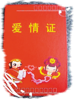 各種各樣的“愛情證書”的頒發(fā)機(jī)構(gòu)非常有意思,有“天長地久愛情協(xié)會”,有“愛情證書批發(fā)中心”,也有“月老一線牽愛情鑒定中心”,還有“中華人民共和國幸?偸稹钡取