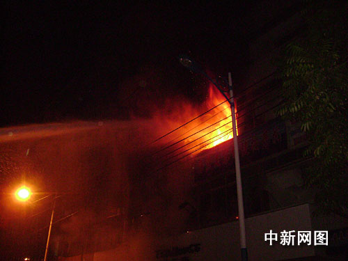 消防指揮員經(jīng)現(xiàn)場偵查發(fā)現(xiàn),大火處于最兇猛的階段,窗戶的玻璃已經(jīng)全部燒毀掉落于地面。消防員先用水炮控制火場,避免大火燒到其他民房。在得知起火點是三樓一個按摩院后, 幾名戰(zhàn)斗員配帶空氣呼吸器進入樓內(nèi)偵察,并逐個樓層拍門呼喊住戶疏散。偵查人員在6樓602號房將熟睡的一家三口喚醒并護送下樓。