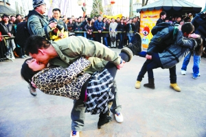 身邊的對手相繼落地,4號先生還在堅(jiān)持。當(dāng)主持人宣布他是唯一還沒倒下的人時(shí),他仍鉚著勁站了一會兒。“她真的挺沉的。”放下女友,4號先生重重地喘了口氣,女友則給了他一個(gè)大大的擁抱。這對4號情侶最終贏得了一部摩托羅拉手機(jī)!笆謾C(jī)送給女朋友,當(dāng)做情人節(jié)禮物。”4號先生摟著女友,大聲地宣布。(記者王卡拉 實(shí)習(xí)生魏楠)