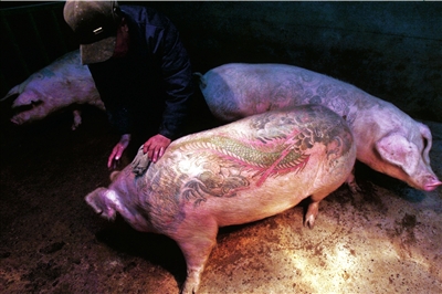 在北京順義區(qū)小店村,瑞士藝術(shù)家威姆德沃伊創(chuàng)建了一個(gè)“藝術(shù)農(nóng)場(chǎng)”:給一群豬文身,然后將之作為威姆德沃伊的“作品”高價(jià)賣出,每頭豬能賣到70萬(wàn)到100萬(wàn)元人民幣。這種聞所未聞的“創(chuàng)作”因此引來(lái)了爭(zhēng)議。
