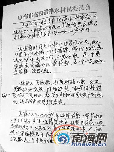 案發(fā)后,吳敬梅到轄區(qū)瓊海公安局城北派出所投案,現(xiàn)被關(guān)押在瓊?词厮。吳敬梅的女兒和12歲小兒子,不得不離開家,到村委會安排的臨時房子里暫住。(李域)