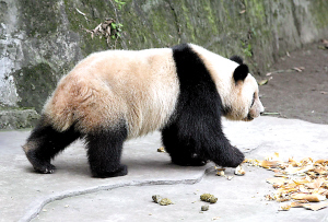 記者發(fā)現(xiàn),幾只熊貓的白色毛基本都有泛黃現(xiàn)象,特別是背部和尾部特別明顯。記者介紹網(wǎng)上帖子內(nèi)容后,飼養(yǎng)員張乃成介紹說,重慶潮濕陰雨的天氣,是造成熊貓毛色泛黃的原因之一。“熊貓喜歡在地上玩耍,免不了會(huì)沾上泥土灰塵。”張乃成稱,根據(jù)熊貓毛色的干凈程度,飼養(yǎng)員會(huì)不定期為它們洗澡,但毛色是洗不掉的。冬季熊貓毛色不如夏季看起來那么亮,3、4月份換毛后,看起來就干凈多了!