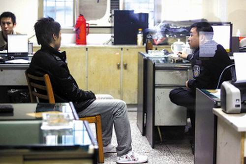 昨天下午4點,記者在較場口派出所的詢問室外,隔著玻璃看到了這名小伙子。他身高大約1.65米,身穿黑色冬衣,栗黃色的頭發(fā)十分蓬亂,臉上和脖子上臟兮兮的,目光有些呆滯。