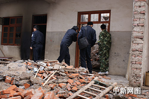 消防隊(duì)員到達(dá)現(xiàn)場(chǎng)時(shí)看到坍塌現(xiàn)場(chǎng)一片狼藉,到處是破碎的磚瓦,樓房第一層三間房子均被大量磚瓦埋壓,其中位于中間部位的房子坍塌最為嚴(yán)重。經(jīng)詢(xún)問(wèn)得知,這就是兩名幼兒被埋壓的房間。