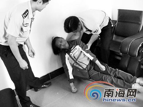 符某某被帶到上埇派出所接受調查。據(jù)該女子交代,她姓符,老公是萬寧東澳人,此次來瓊海尋找老公。警方告訴記者,該女子曾在海南多處多次作案,每次被抓都是老一套:自稱來找老公,自稱有病。說話間,那女子突然倒在地上,口吐白沫。民警告訴記者:“這個女人只是吐出唾沫掛在嘴角裝樣子,不是癲癇病發(fā)作!惫,5分鐘后,該女子停止抽搐,自動坐到座位上。