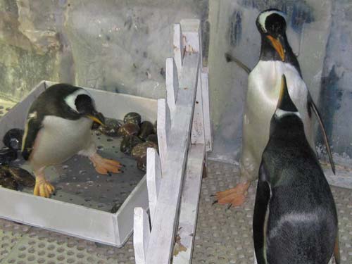 “面壁思過(guò)”了幾天后,它們重回故園?紤]到它們想當(dāng)父母的心情,趙毅給了它們一個(gè)“安慰獎(jiǎng)”———一枚假企鵝蛋。結(jié)果,它們馬上安靜下來(lái),趴在早已用鵝卵石搭建好的“產(chǎn)房”一心一意孵起蛋來(lái)。趙毅發(fā)現(xiàn),它們的孵化本領(lǐng)非常高,甚至比已經(jīng)產(chǎn)蛋的企鵝媽媽更加熟練。