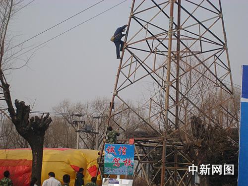 為當(dāng)財(cái)務(wù)科長(zhǎng) 一男子爬上高壓鐵塔求官兒(圖)