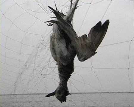 記者拍攝到的這個(gè)捕捉住小鳥的網(wǎng)叫天網(wǎng),天網(wǎng)是捕捉天鵝最常用的一種方法,在天鵝食物比較豐富的湖邊加起這個(gè)網(wǎng),天鵝起飛或降落時(shí),很容易就會(huì)被網(wǎng)纏住。