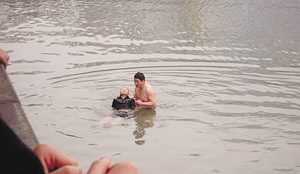 網(wǎng)友zcxyh介紹說(shuō),出事地點(diǎn)位于常州市中心附近一座比較著名的公園——蘭園旁的白蕩浜河,事發(fā)當(dāng)天,見到女子跳河后,這位和女兒在公園散步的男子二話不說(shuō),脫下衣褲就跳入冰冷的河水中,雖然救人的中年男子在水中凍得直打哆嗦,但他還是堅(jiān)持游到輕生女子跟前,不顧一切地把女子往岸邊拉。警方趕到時(shí),救人的中年男子把警方投遞來(lái)的繩索和救生圈套在女子身上,成功地將女子營(yíng)救上岸后,中年男子也不多話,穿起衣服后悄悄地走了!斑@一幕讓我感動(dòng),因此,趕緊拿出相機(jī),拍攝了整個(gè)過(guò)程!