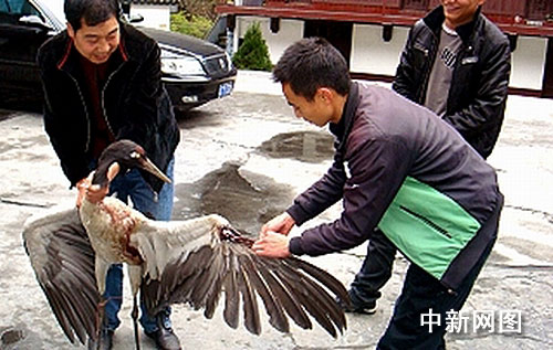 經(jīng)檢查,該黑頸鶴的左翅骨頭已折斷,傷口還在流血,工作人員迅速對傷口進行消毒處理,敷上消炎藥,并喂其食物。由于保護區(qū)沒有專業(yè)的獸醫(yī)和救護設備,無法對黑頸鶴進行后續(xù)治療,經(jīng)請示上級主管部門,隨后將其送到了雅安碧峰峽野生動物急救保護中心。(完)
