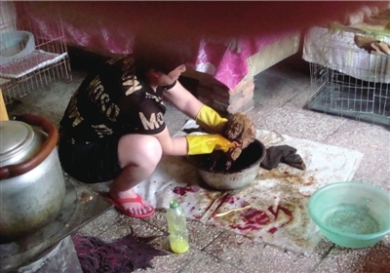 貴婦狗每染過一次顏色就加深一些,漸漸接近褐紅色,魏某笑著說:“你看神奇吧,貴婦就慢慢變成泰迪了!彼f現(xiàn)在狗市上做過活的狗很多,但是做完后都不會(huì)拿到狗市里的正規(guī)店鋪里賣,只在散市賣!斑@樣賣出去人找不到你,比較保險(xiǎn)”。